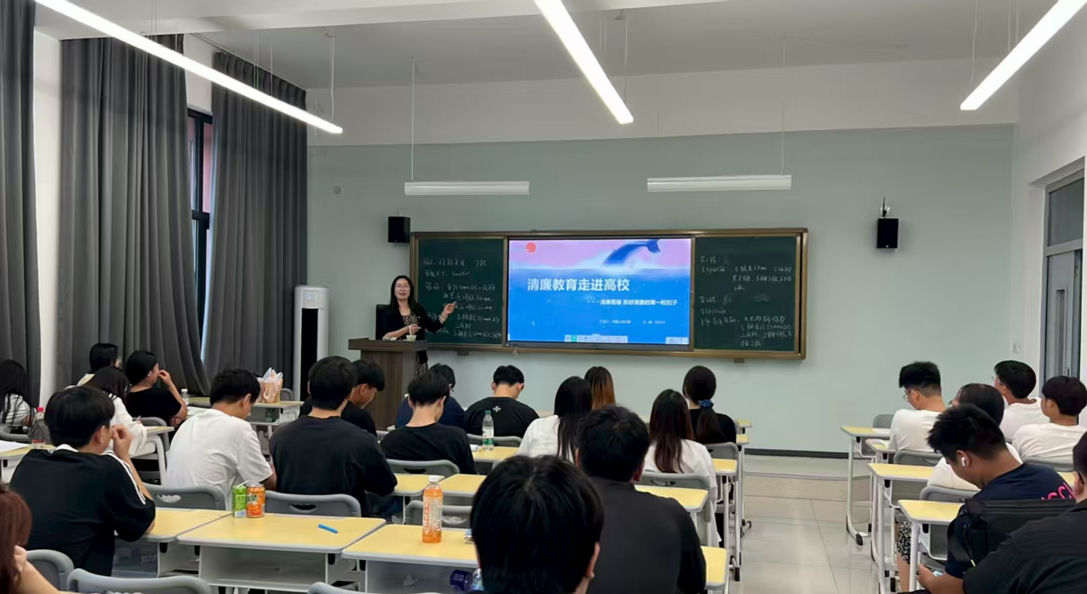 房蕾首先阐明清廉教育进高校的必要性:“青年时期是价值观塑造的关键期,提前植入廉洁基因,能帮助大家在职业生涯起点就树立正确的权力观、地位观、利益观,从思想源头预防腐败。” 随后,她通过援引“公仪休拒鱼”等典籍中的清廉典故,结合职场常见的廉洁风险场景,生动阐释“清廉是福,贪腐是祸”的深刻内涵,强调“廉洁自律不仅关乎个人职业长远发展,更维系家庭幸福与社会稳定”,寄语学生以清廉为人生底色,未来职场中知敬畏、存戒惧、守底线。