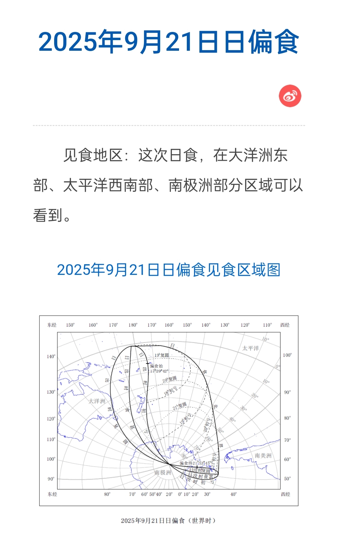 记者还注意到,中国科学院紫金山天文台官网更新了一则科普动态内容也提到,今年9月21日有日偏食,在大洋洲东部、太平洋西南部、南极洲部分区域可以看到,未包括中国。