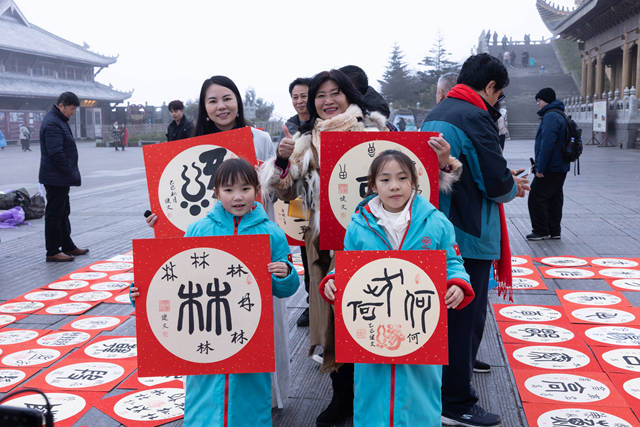 在唐健文先生的精心组织下,活动现场还举办了"中国古文字姓氏文化书法展公益行"的活动。游客们踊跃参与,共同完成这场跨越七个代际的文化接力。唐健文先生表示:"每一个姓氏都承载着一段历史,每一次传承都延续着一份文明。我们要让中华优秀传统文化在新时代焕发新的生机。"中国古文字博物馆谭文贵馆长在现场也深有感触地表示:"从博物馆的展厅到峨眉山金顶,我们让古老的文字焕发了新的生命力。这次七代同堂的文化传承活动,正是中华文明生生不息的最好证明。"