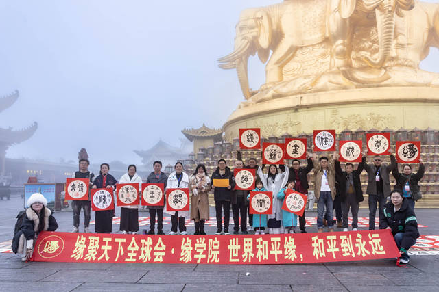 2025年10月26日,"缘行天下·走进四川"文化考察活动在峨眉金顶迎来重要时刻。"世界和平缘"倡导者、中国古文字姓氏文化书法作品创作者唐健文先生,与中国古文字博物馆谭文贵馆长、81岁高龄的香港慈善家赵曾学韫女士共同率领跨越七个代际的考察团,成功举办"世界和平缘"第二站活动,展现中华文化薪火相传的动人画卷。