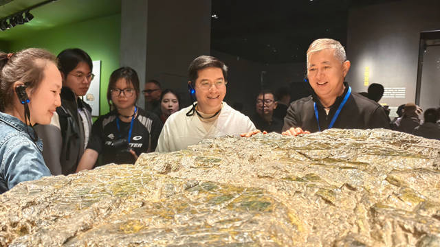 2025年10月27日,广汉三星堆博物馆,"缘行天下·走进四川"文化考察团唐健文老师一行在三星堆博物馆原副馆长、广汉市三星堆古蜀文化研究协会会长陈修元的陪同下,与中国古文字博物馆谭文贵馆长等嘉宾一同参访三星堆,为古蜀文明遗址增添了新的传承佳话。