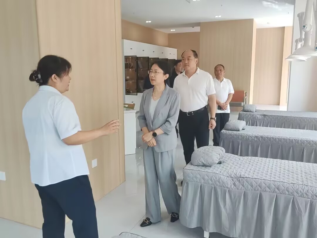 8月29日,淄博市副市长边江风一行赴张店区中医院银发经济活力街区中医康复馆调研指导工作。市民政局党组书记邢化良,副区长王志刚,区民政局党组书记、局长王俊及医院党委书记、院长张方祥陪同。边江风副市长实地查看了康复馆的基础设施建设与中医特色文创产品,听取了关于中医生活化推广与适宜技术应用情况的汇报,了解了兼具实用与养生功能的中医文创产品,她强调要充分发挥中医药在健康养老中的独特优势,精准对接老年需求,打造特色鲜明的银发经济服务样板。