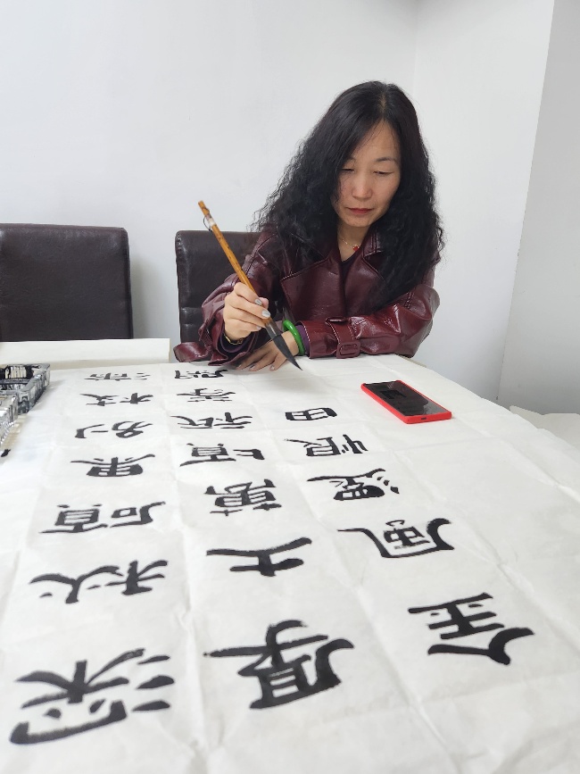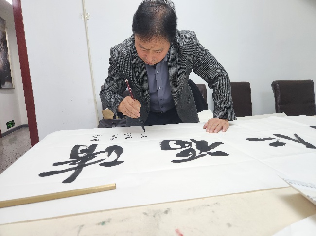 在创作现场,11位书画家兴致盎然、挥毫泼墨。他们围绕企业精神、行业特色及金秋意境展开创作,或楷书端庄大气,或行书飘逸灵动,或国画意境悠远。有的以苍劲笔触描绘企业发展的蓬勃态势,有的以细腻线条展现员工实干的精神风貌,还有的借秋菊、丹枫等意象传递丰收与奋进的寓意。创作过程中,企业员工们驻足观摩,近距离感受传统书画艺术的魅力,不时为书画家们精湛的技艺鼓掌称赞。