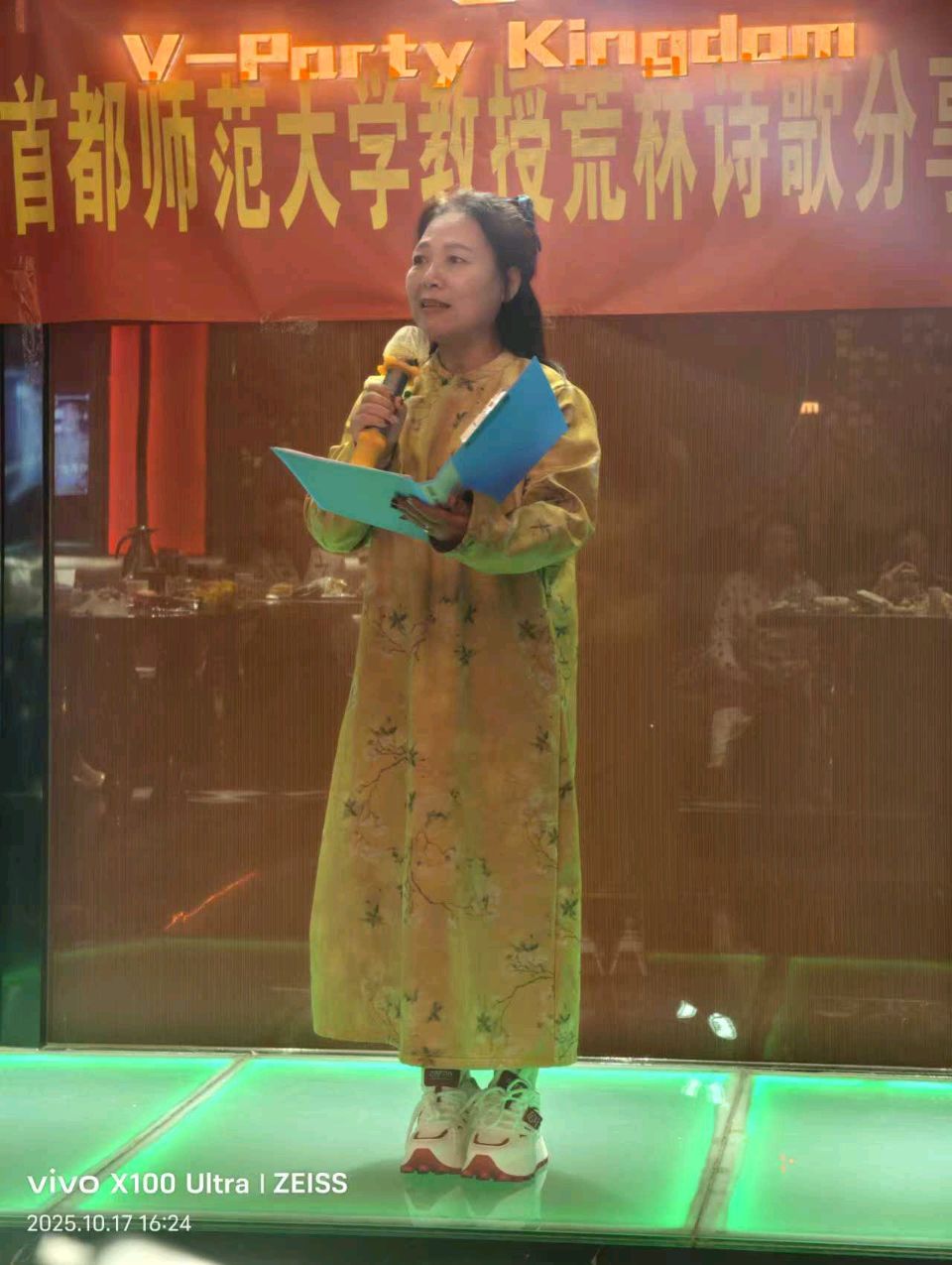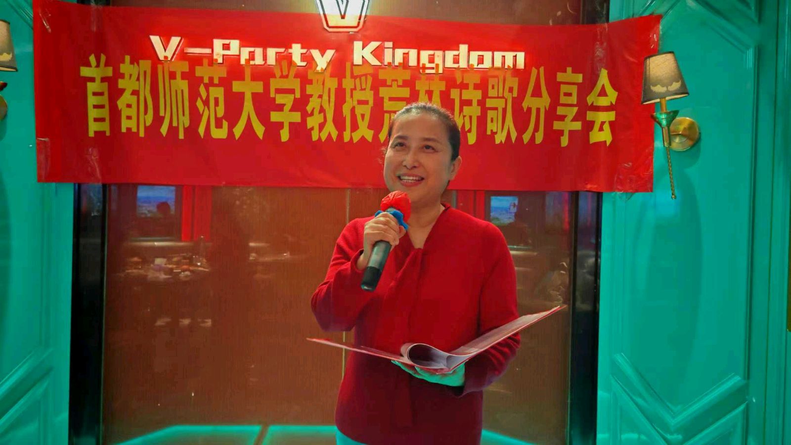 活动开始,芳闻主席首先代表丝绸之路国际诗人联合会、丝路文化院对学者、教授荒林女士莅临西安古城表示诚挚的欢迎,并向在座的嘉宾介绍了荒林女士及个人学术成就和文学成就。她说到:荒林女士,真名刘群伟,系中国作家协会会员、北京评论家协会会员。澳门大学博士、博士后。首都师范大学科德学院国际女子书院院长。中国大湾区诗汇副主席。美国密西根大学、澳大利亚阿德莱德大学、英国剑桥大学访问学者。出版诗集《与第三者交谈——荒林诗选》《北京,仁慈的城》《未名湖叠影》散文集《澳门之美》《用空气书写》《天生女性主义》学术著作《日常生活价值重构——中国当代女性主义文学思潮研究》《文学的女性主义——大中华语境中的女性主义文学思潮研究》《艺术之魅——荒林艺术评论集》等。获北京文学奖、女性文学理论贡献奖、全国优秀妇女读物奖、中国当代文学研究奖、国家社科优秀成果等。她在致词中说:荒林教授的诗歌分享会,这既是一场北京与西安诗歌联谊的艺术盛宴,更是一次跨越学术与创作的深度对话。在现代诗的发展版图中,荒林教授以“学者之思”熔铸“诗人之笔”,构建了极具张力的艺术世界。她的诗歌不仅是个人艺术探索的结晶,更是观察当代新诗发展的重要范本——从语言本体的现代化探索,用“塔影在春云里踮踮脚”让古典意象与现代语汇碰撞出奇妙火花;到意象系统的革命性建构,以跨文化视角将“剑桥流水”的天鹅与东方空灵美学相融;再到时空交错的叙事美学,借“飞机将我送到唐朝”实现地理与文化的双重穿越;最终落脚于学者型诗人的主体性建构,把女性主义思考与全球化视野化作细腻的诗性表达。这些探索,为现代新诗发展提供了珍贵启示。西安,是承载千年文脉的诗意之城,从唐诗的豪迈气象到今日的文化传承,始终涌动着对文字之美、精神之境的追求。而荒林教授的诗歌,恰是在传统与现代、本土与国际的对话中寻找诗意,这与西安的文化气质不谋而合,与西安打造唐诗之都遥相呼应。相信今天的分享,必将让我们在她的诗句里,读懂语言的温度、意象的深度与时空的广度。