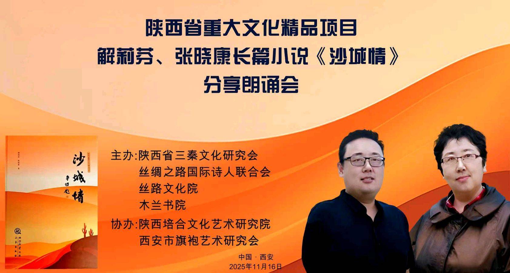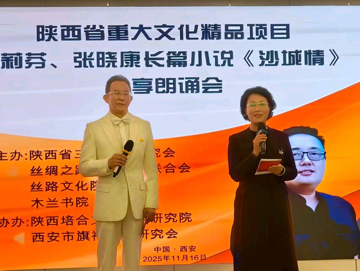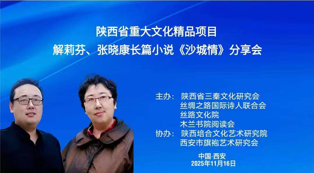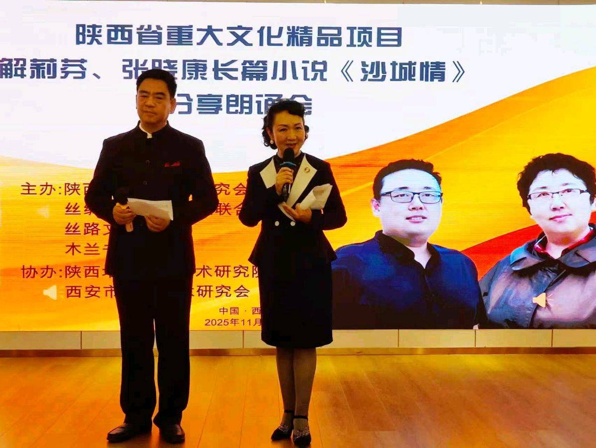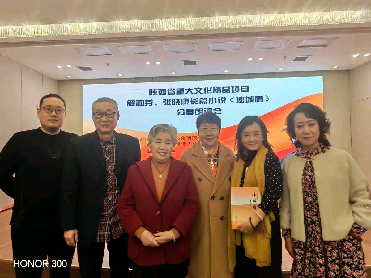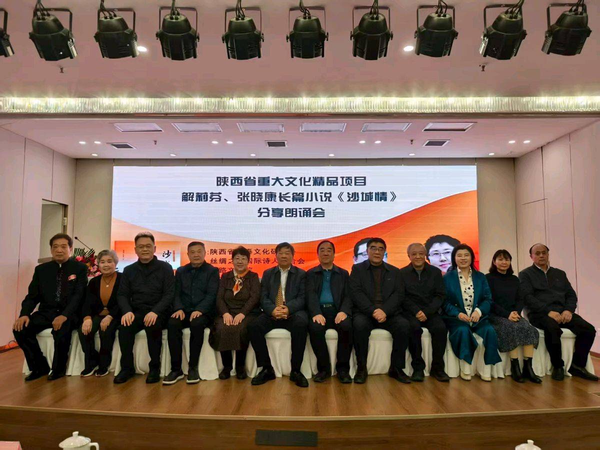 11月16日上午,“陕西省重大文化精品文化项目解莉芬、张晓康长篇小说《沙城情》分享朗诵会”在陕西省三秦文化研究院、丝绸之路国际诗人联合会、丝路文化院、木兰书院的共同筹备下,在大雁塔附近西安东方大酒店隆重举办。来自陕西文化届的名流、艺术家、朗诵家、社会活动家们齐聚一堂,循着文字的脉络,在《沙城情》作者解莉芬的创作感想中,聆听角色的心声,通过点评专家的精彩点评、朗诵者的深情演绎,领略了一场别样的文学精品盛宴。