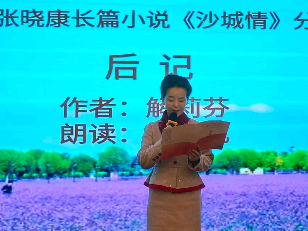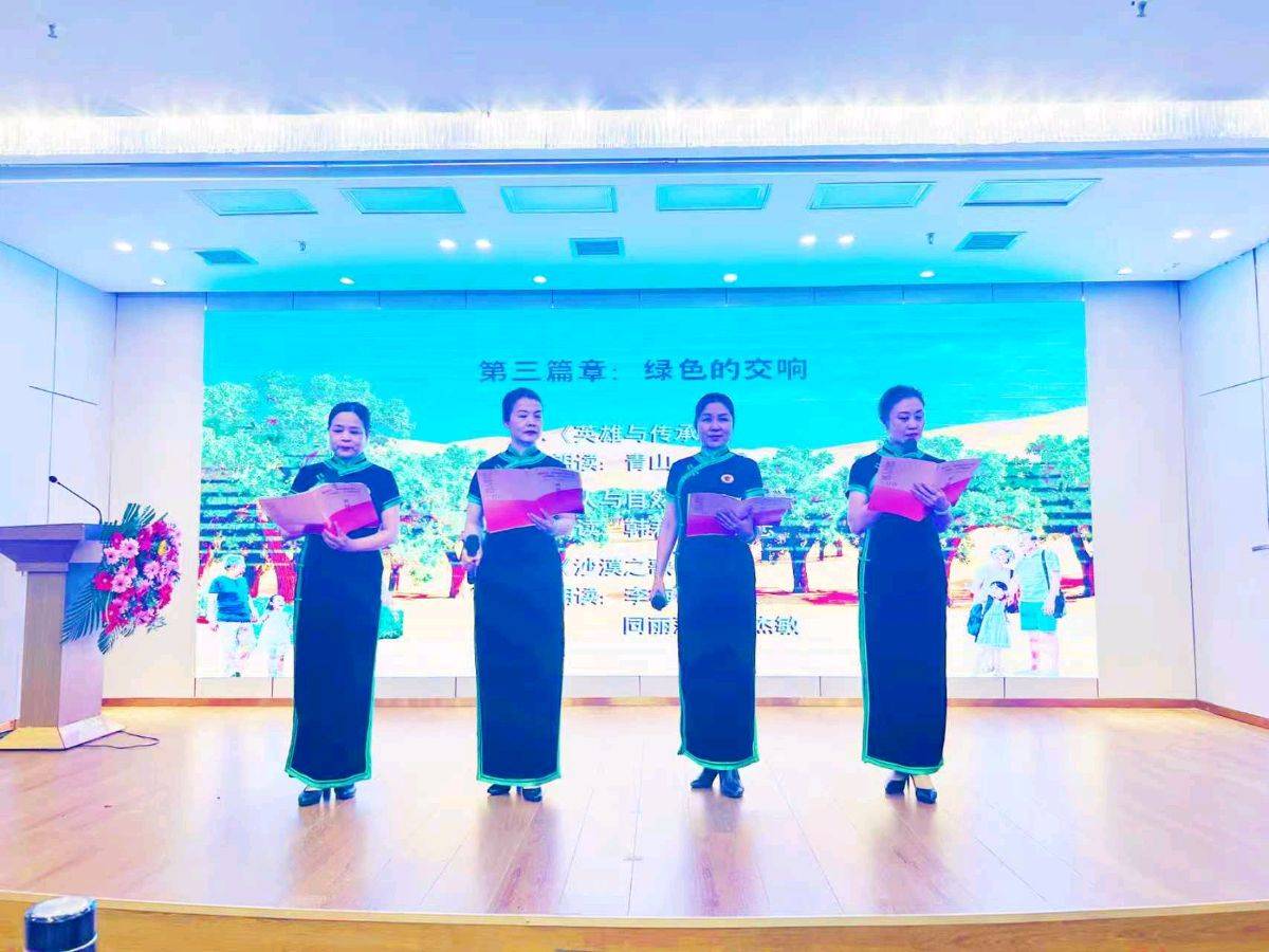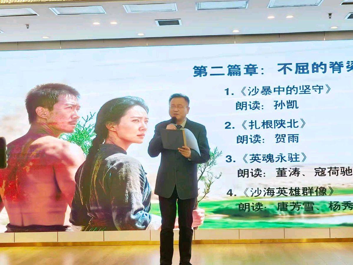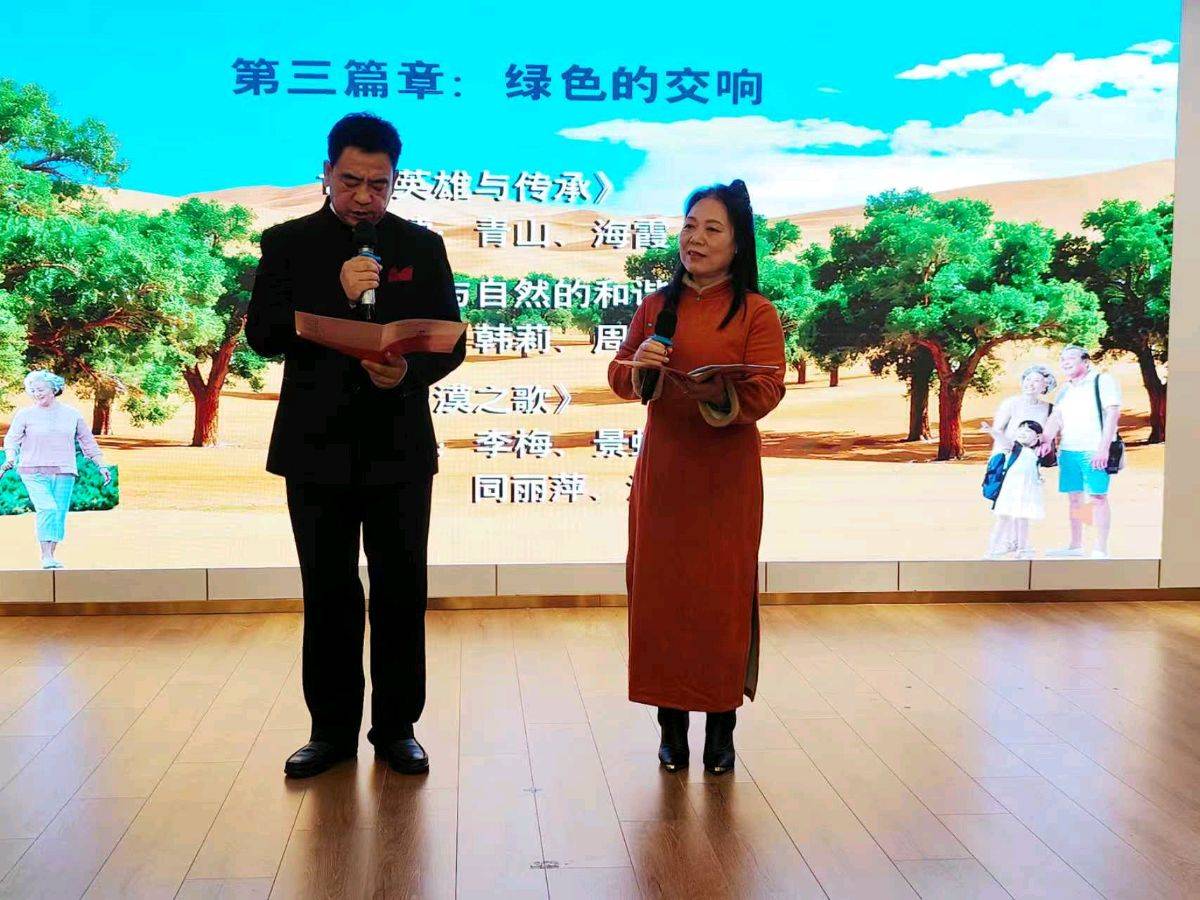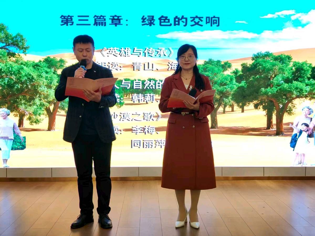 四位点评专家发言结束,随后进行了《沙城情》小说章节选段的的朗诵分享会。分别以《序言》、《第一篇章-风沙中的记忆》、《第二篇章-不屈的脊梁》、《第三篇章-绿色的交响》、《后记》等多个篇章进行演绎,给现场嘉宾带来了一场完美的视听觉盛宴。朗诵家孙竹君、庞军主持朗诵分享会。